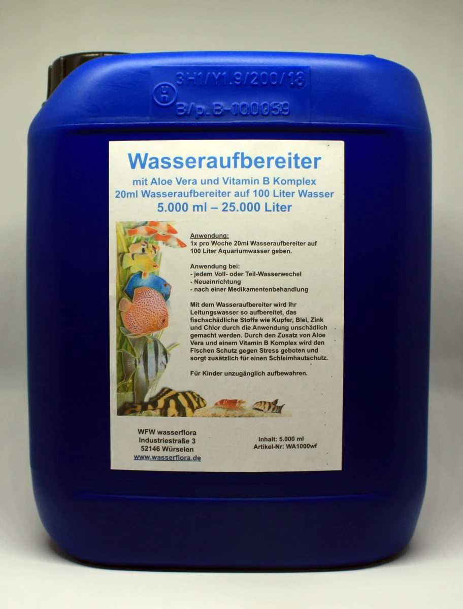 Mit dem Wasseraufbereiter wird Ihr Leitungswasser so aufbereitet, das fischschädliche Stoffe (Schwermetalle) wie Kupfer, Blei, Zink und Chlor durch die Anwendung unschädlich gemacht werden. Durch den Zusatz von Aloe Vera und einem Vitamin B Komplex wird den Fischen und Garnelen Schutz gegen Stress geboten und sorgt bei Fischen zusätzlich für einen Schleimhautschutz.