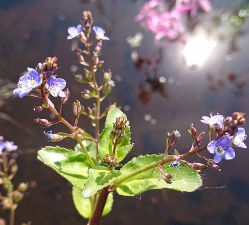 Die Bachbunge ist eine mehrjährige Pflanze und hat ein hohles kriechendes Rhizom. Die traubigen Blütenstände entspringen den Blattachseln und bestehen aus 20 – 25 himmelblauen Blüten. Im flachen Wasser der Uferzone wächst die Bachbunge zum hübschen Bodendecker heran. Sie vermehrt sich über die kriechenden Sprosse oder durch Selbstaussaat.